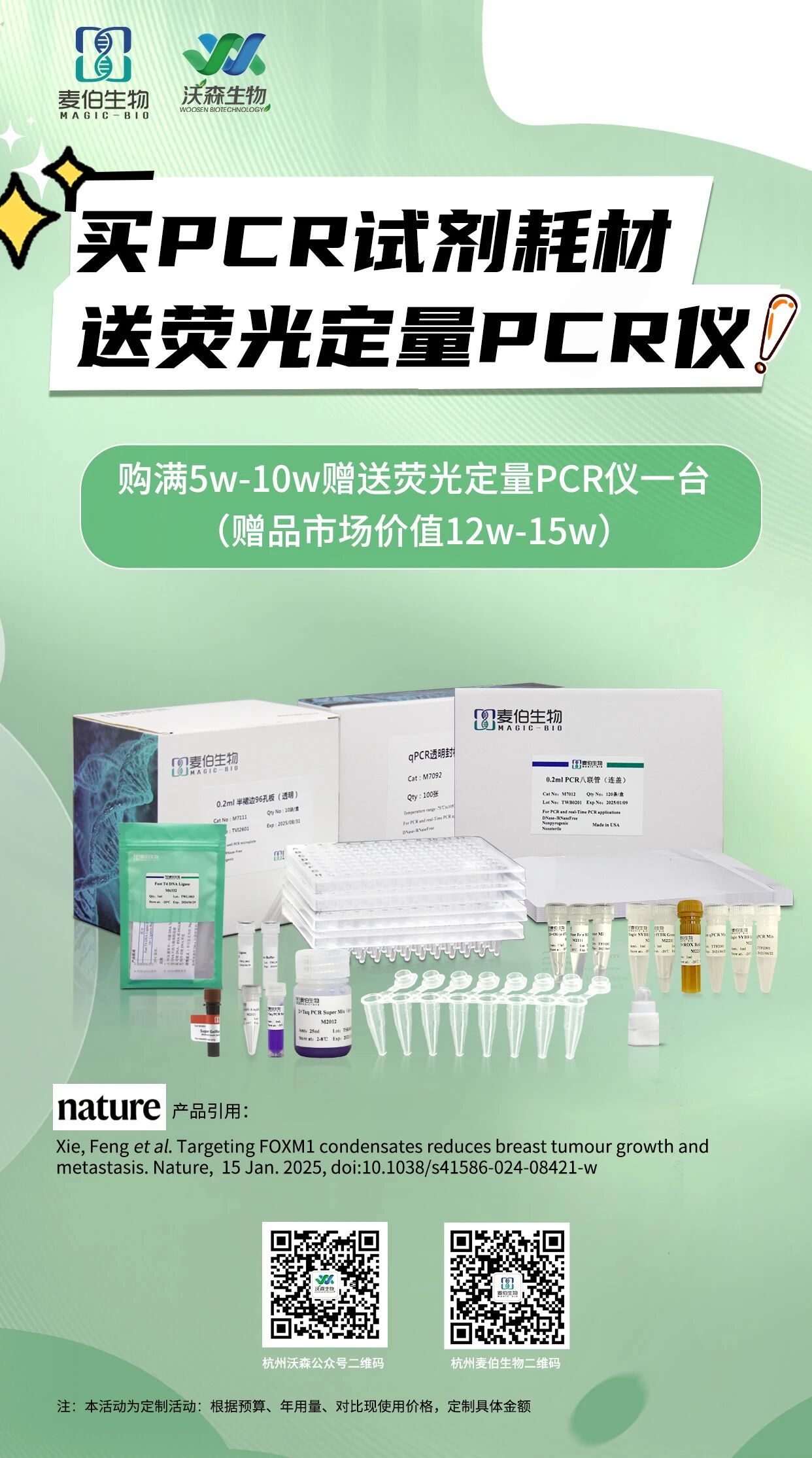 我們?yōu)槟鷾?zhǔn)備了一份輕松體驗完整qPCR工作流的優(yōu)惠活動—“買PCR試劑耗材免費獲取一臺熒光定量PCR儀”,希望能助您更簡單、更經(jīng)濟地組建自己的理想實驗配置!