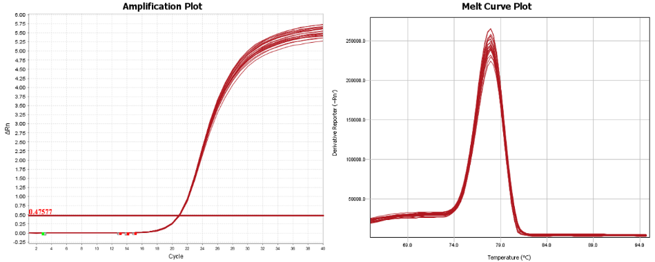 以小鼠mRNA為模板,設(shè)置復(fù)孔,結(jié)果顯示Magic One-step RT-qPCR Mix復(fù)孔結(jié)果一致