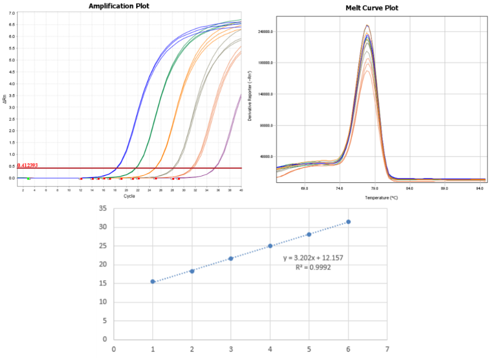 用cDNA按5的倍數(shù)稀釋5個梯度,用Magic qPCR Master Mix (Probe)進行擴增分析