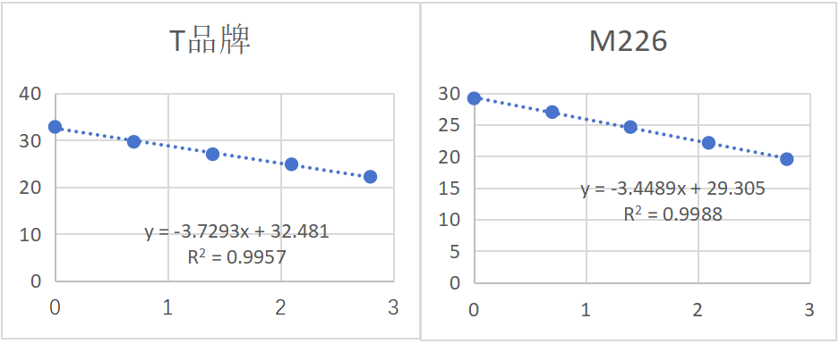 用小鼠mRNA按5的倍數(shù)稀釋5個梯度,用Magic One-step RT-qPCR Mix進行擴增分析